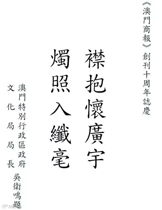 澳門特別行政區政府文化局局長吳衛鳴題詞