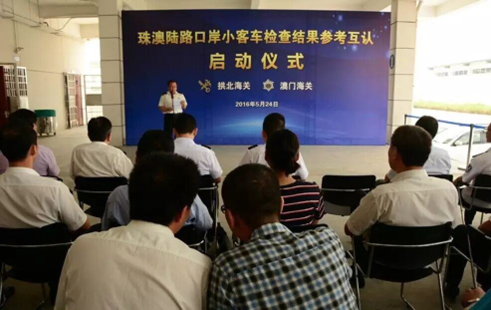 5月24日上午,拱北海關與澳門海關聯合舉辦新聞發佈會,並於當天在橫琴口岸啟動“珠澳陸路口岸小客車檢查結果參考互認”新作業模式。這是兩地海關全面貫徹落實《粵澳合作框架協議》、《2014-2016年度內澳兩地海關合作計畫》,推進雙方執法合作的積極舉措,也是繼跨境貨物“綠色關鎖”以來,內地與澳門海關陸路口岸查驗結果參考互認的又一創舉。