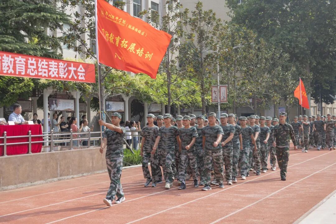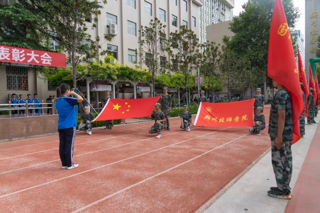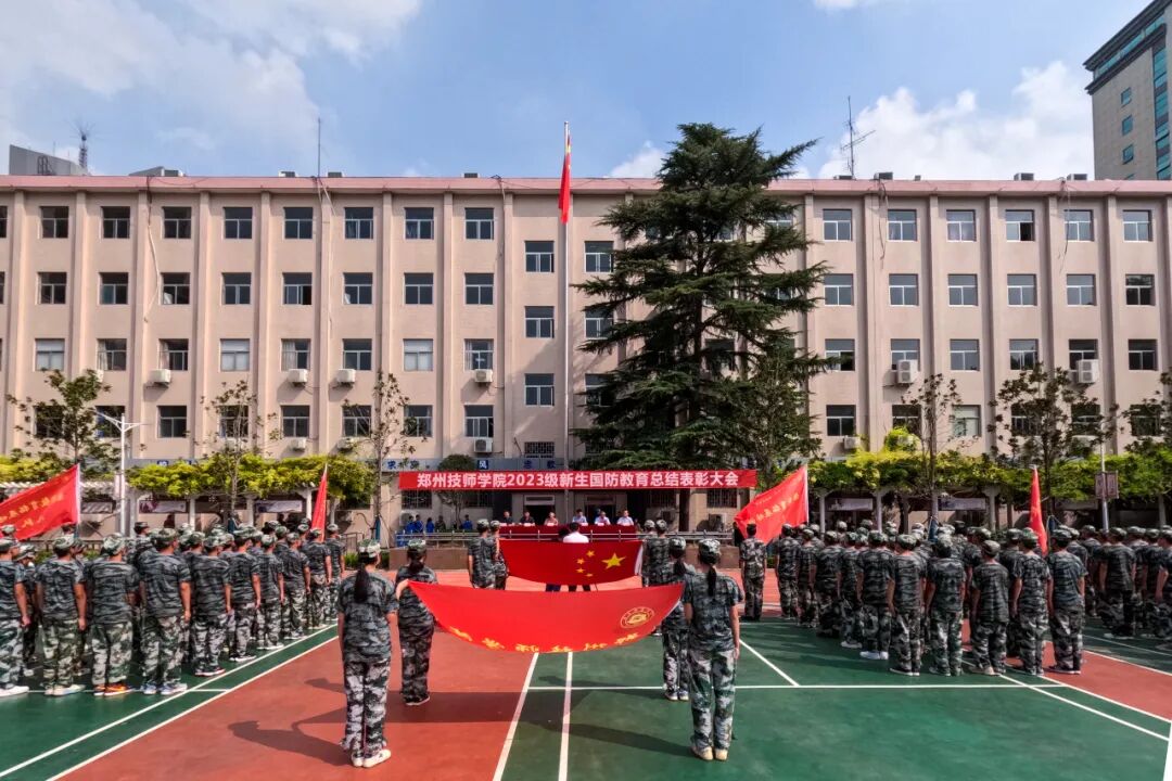2023年9月7日上午,郑州技师学院2023级新生国防教育总结表彰大会在学院陇海路校区和化工路校区同步举行。学院纪委书记陈振华、副院长罗荣,院领导王淼、李建民、燕伟、余晨明等分别在两个校区出席大会,各系负责人、学保处全体人员、全体军训教官、各新生班主任、全体新同学及特邀学生家长代表现场观摩。
