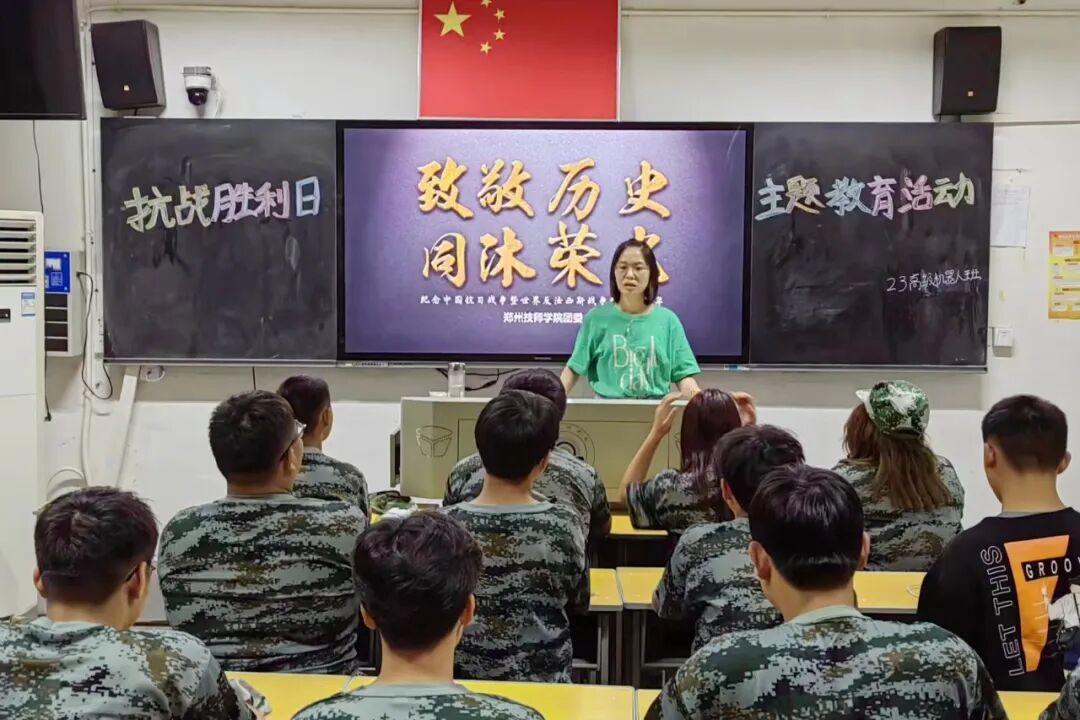 为纪念中国人民抗日战争暨世界反法西斯战争胜利78周年,使同学们能够牢记历史、缅怀先烈、珍爱和平、开创未来。9月1日晚自习,学院团委利用新生军训的契机,在各班开展抗战胜利日主题教育活动。