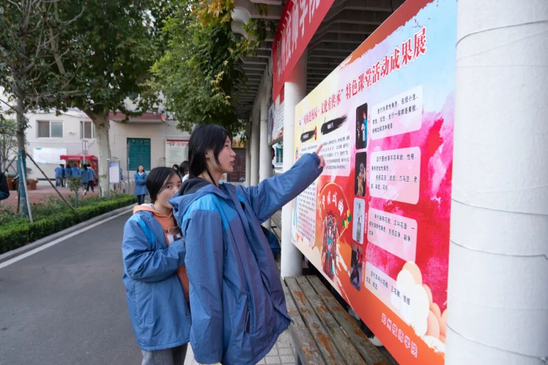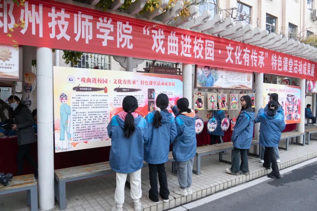 在校园文化长廊,一场精心布置的戏曲文化展览,吸引了众多师生驻足观看。