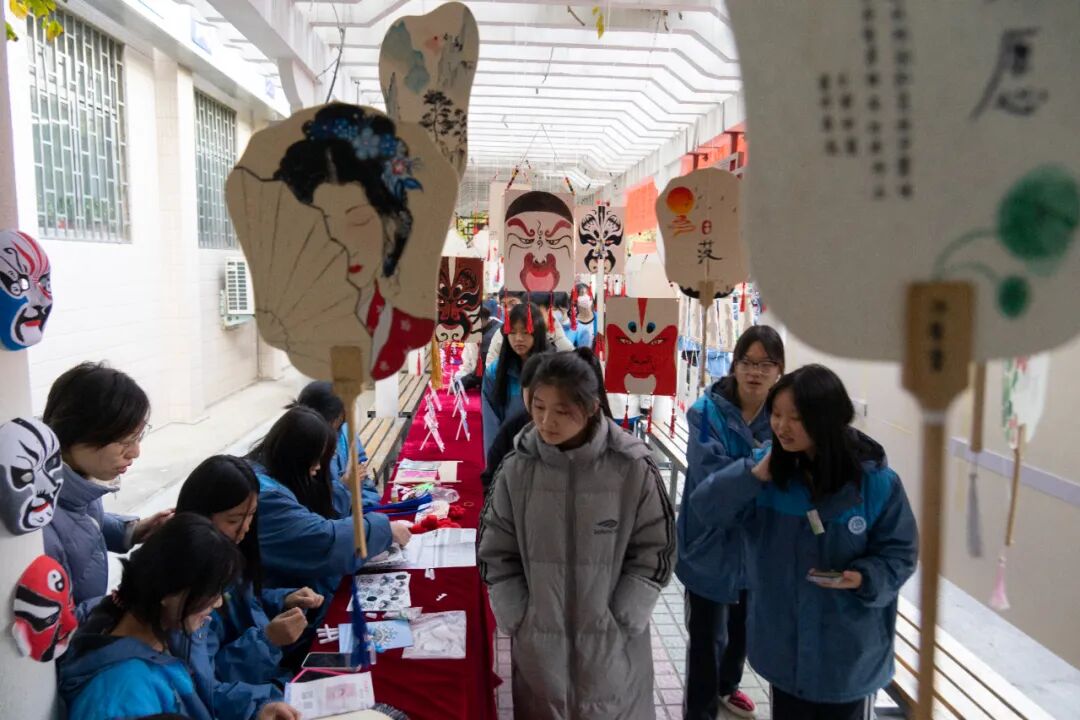 据基础教育部教师朱炎介绍,进行课程创新,开设特色课堂,一直是基础教育部进行教学革新的一项重要内容。此次展出的手绘脸谱、戏曲人物手工作品、戏曲行当扇面、戏曲元素发饰等作品,均是戏曲特色课堂上同学们在学习戏曲知识、欣赏戏曲经典唱段的基础上自己学习、制作完成的。同学们通过学中做、做中学,深刻领悟了学习和发扬优秀传统文化的真正意义。希望同学们通过戏曲学习,从一名对戏曲的欣赏者转变为戏曲艺术的参与者,自觉肩负起传承和弘扬中华民族传统文化的使命,争做新时代中国好青年。