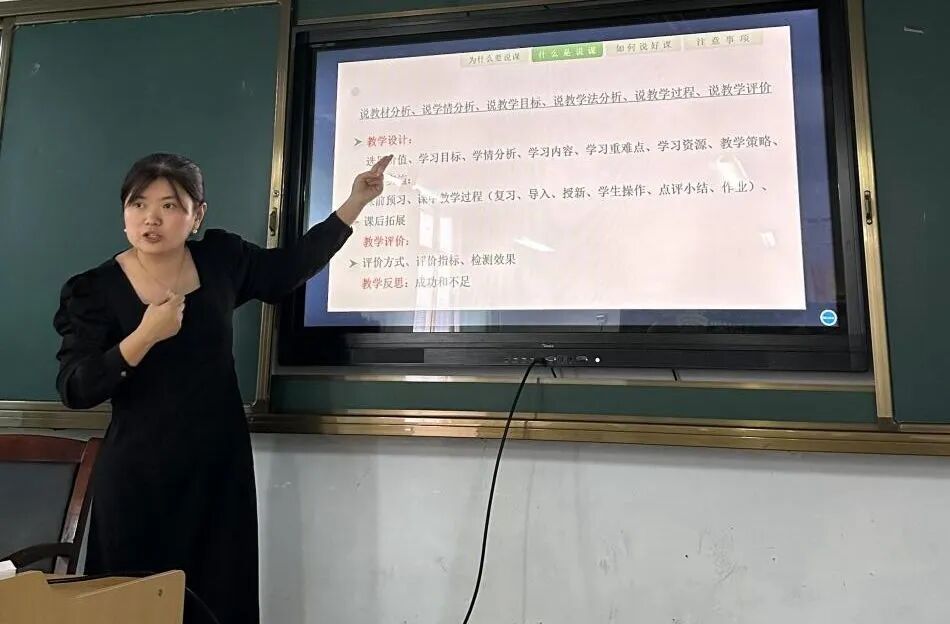 王长青老师结合自身参赛经验,就“什么是说课”、“为什么要说课”、“如何说好课”几个方面,从说课的教学设计、教学实施、教学评价、教学反思以及教师应该具备的基本素养等多方面进行了详细讲解和指导。王老师提出,说课能促使授课教师进一步理清授课思路、明确教学重难点,使教学思维具体化、明晰化,更好地体现教师的教学思想和风格。教师可通过熟悉课程标准、教材内容等,结合教法和学法,因材施教开展好授课工作。