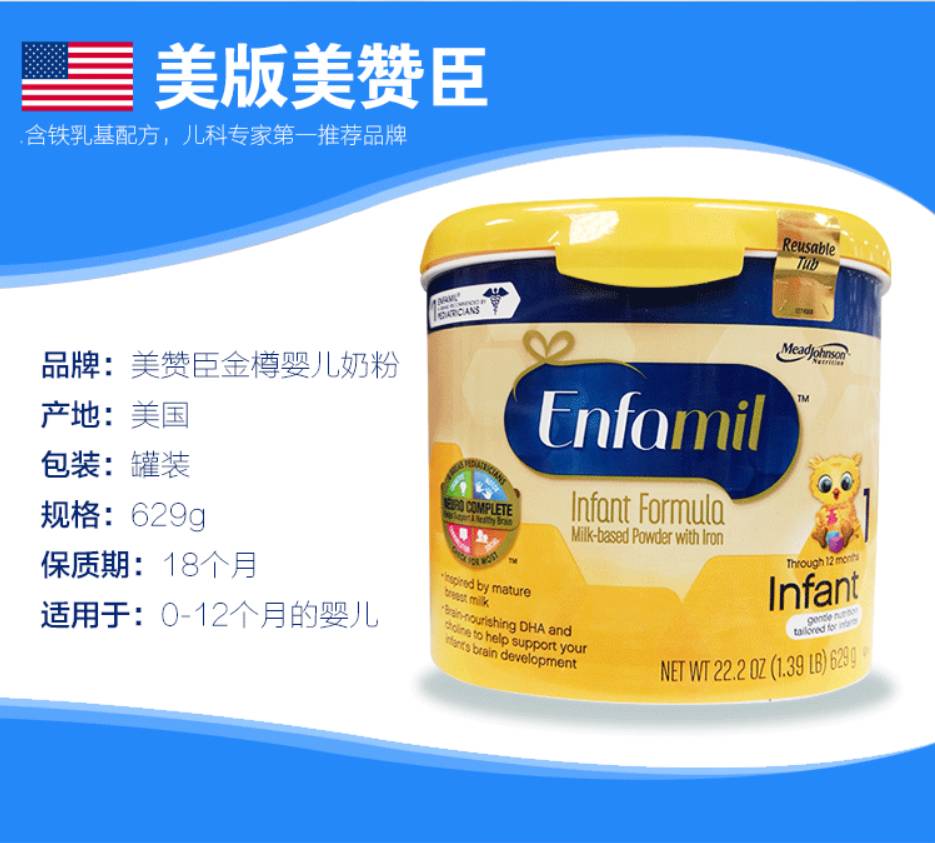 美国美赞臣专为早产或出生低体重儿制定了 早产儿配方奶粉,比普通婴儿配方奶粉提供更多的热量,蛋白质,维生素,矿物质。在设计上增添了更多的营养,DHA和ARA的含量达到了全球母乳的平均含量,富含DHA,为宝宝大脑和身体发育提供了坚实的基础。
