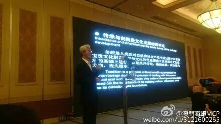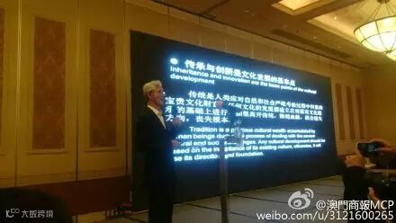 澳門國際設計聯展設計高峰論壇之紮哈時間,在澳門金沙城喜來登酒店五樓會議中心進行。葡萄牙著名建築師卡洛斯卡斯塔涅拉正進行主題演講,中國工程院首批院士,華南理工大學建築設計學院何鏡堂演講主題-文化傳承與建築創新主題以及大桥谕展示設計界女魔頭-紮哈近年作品。
