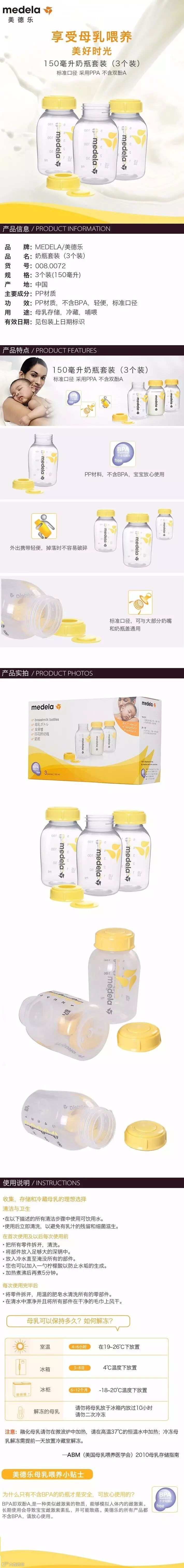 美德乐Medela 标准口径PP奶瓶3个装150ml