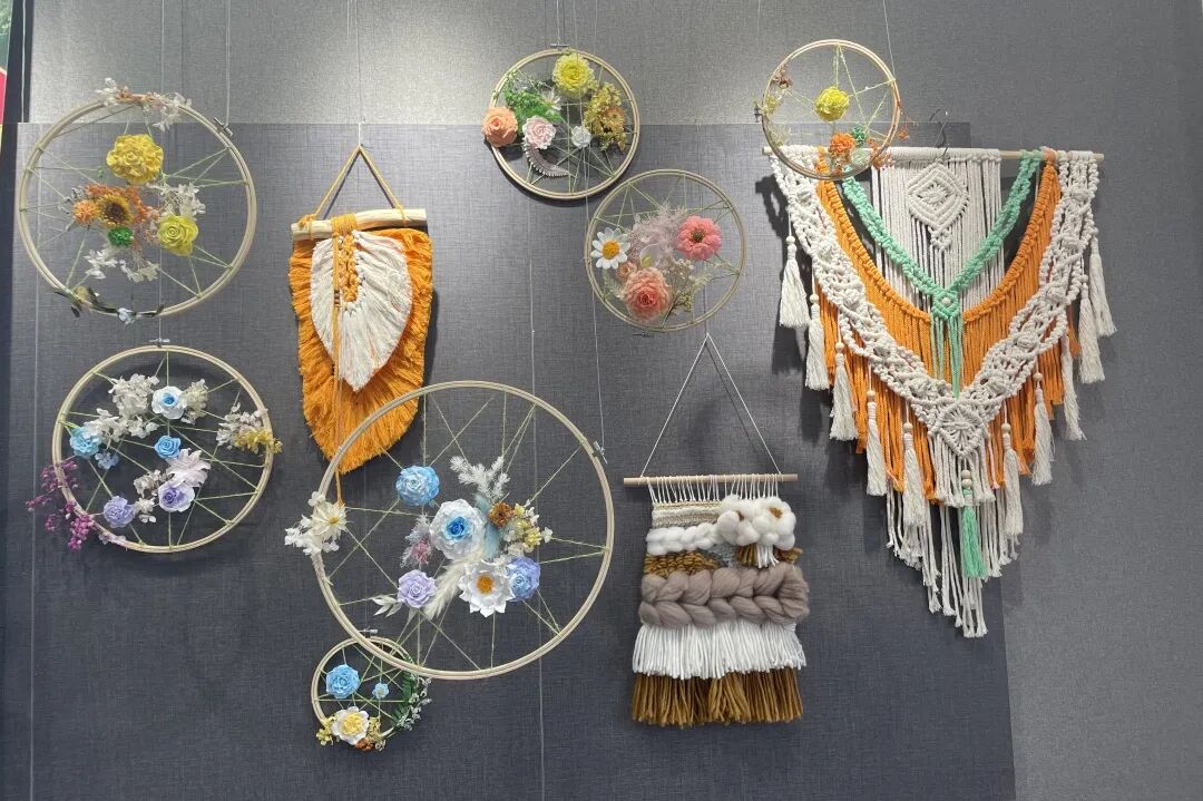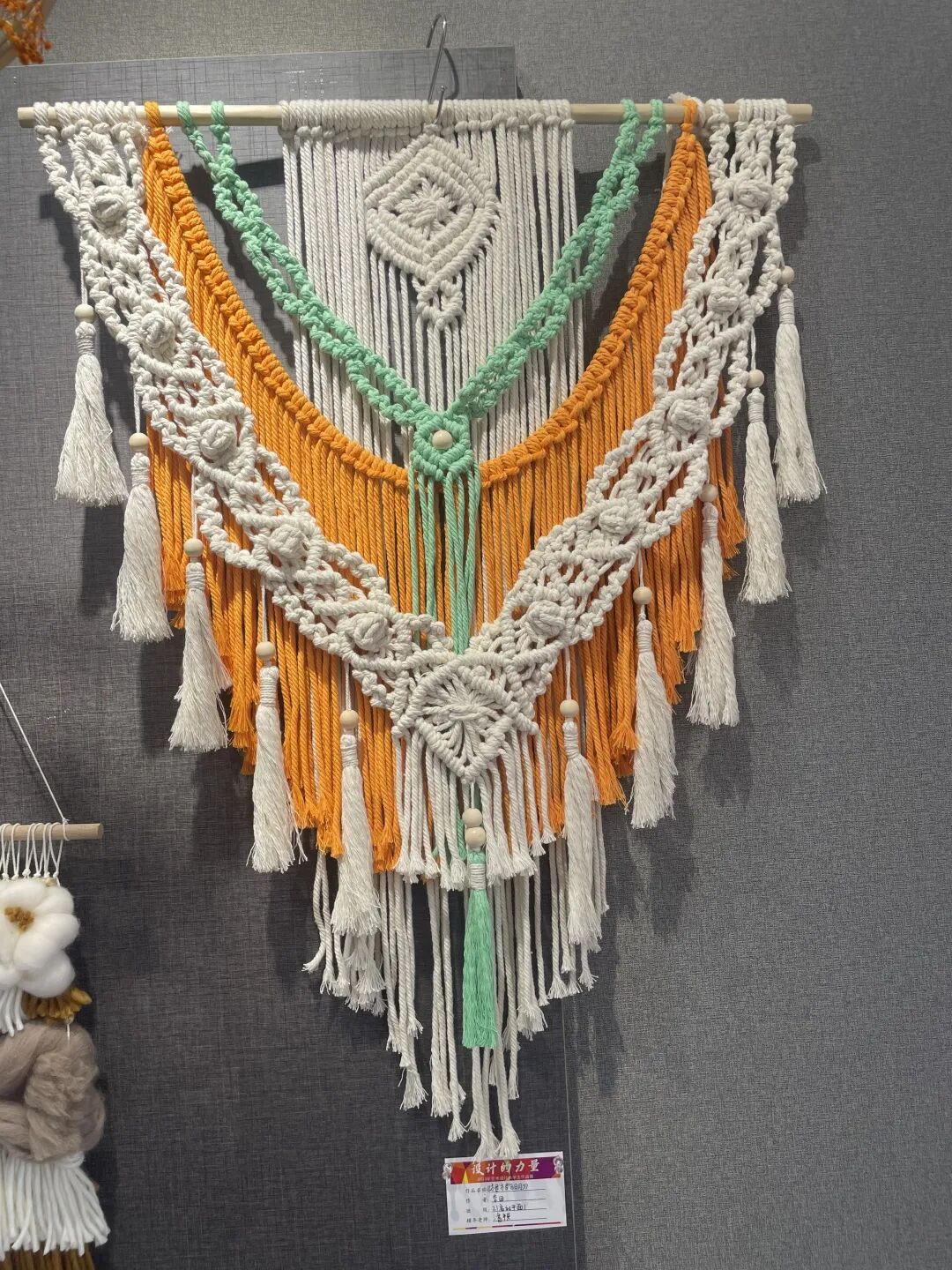 设计说明:本作品以手作为基础融入纤维艺术,以天然的动、植物纤维材料等,用编结、环结、缠绕、缝缀等多种制作手段,创造平面、立体形象的一种艺术。我们从实际出发加以选择、利用、发挥材料与特定造型相适应的质地特性和表现力,因材施艺,增强其审美价值,提升本专业教学多样性。