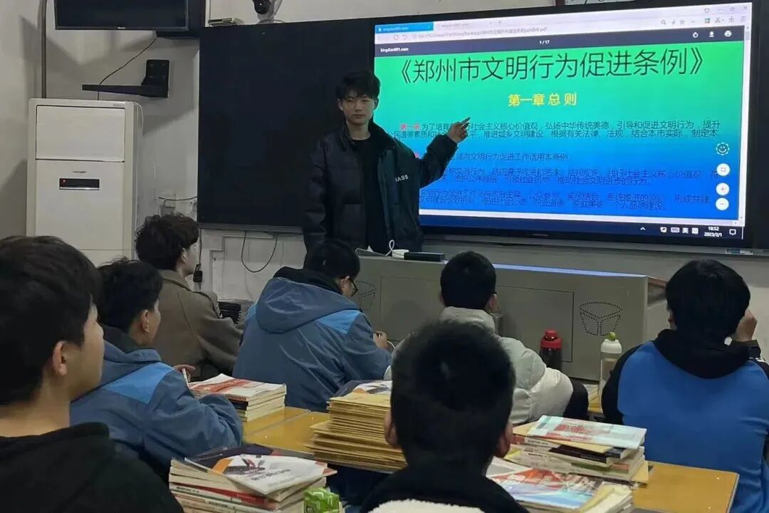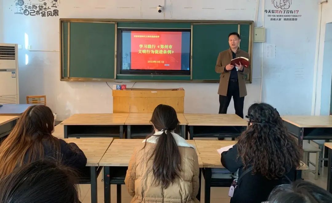 按照省市区文明办关于开展“河南省新时代文明实践推动周”的要求,为进一步推动《郑州市文明行为促进条例》贯彻落实,近日,郑州技师学院组织广大师生通过集体学习、主题团课、志愿服务等形式开展主题实践活动,引导广大师生、周边市民群众主动参与践行《条例》,让文明新风深入人心。