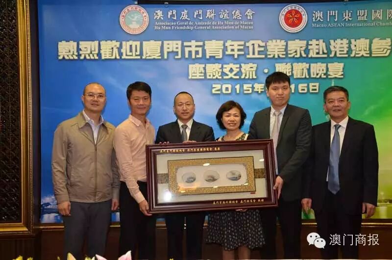 廈門市委統戰部副部長、廈門市海外聯誼會常務副會長蔡林娜率領的廈門青年企業家參訪團,一行三十五人於本月十六日抵澳展開交流考察行程,並於下午五時半出席澳門廈門聯誼總會與澳門東門國際商會舉行的座談會,中聯辦經濟部部長陳翔、協調部副部長張深居、立法議員施家倫、澳門貿促局投資者服務廳高級經理黃偉倫、廈門總商會秘書長朱福志、中國建設銀行澳門分行副行長桑愛民、廈門市政協常委、澳門廈門聯總會會長、澳門東盟國際商會理事長曾志龍,廈門市政協委員、澳門廈門聯誼總會理事長蘇建華,以及本澳工商界人士出席座談會。