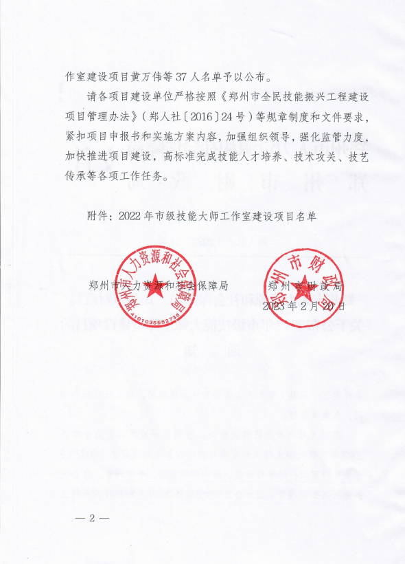 近日,郑州市人力资源和社会保障局、郑州市财政局印发《关于公布2022年市级技能大师工作室建设项目的通知》,我院“魏龙杰焊工技能大师工作室”和 魏冬至汽车维修技能大师工作室”成功获批2022年市级技能大师工作室建设项目。这标志着我院高端技能人才培养、技术创新和职业技能培训迈上新台阶。