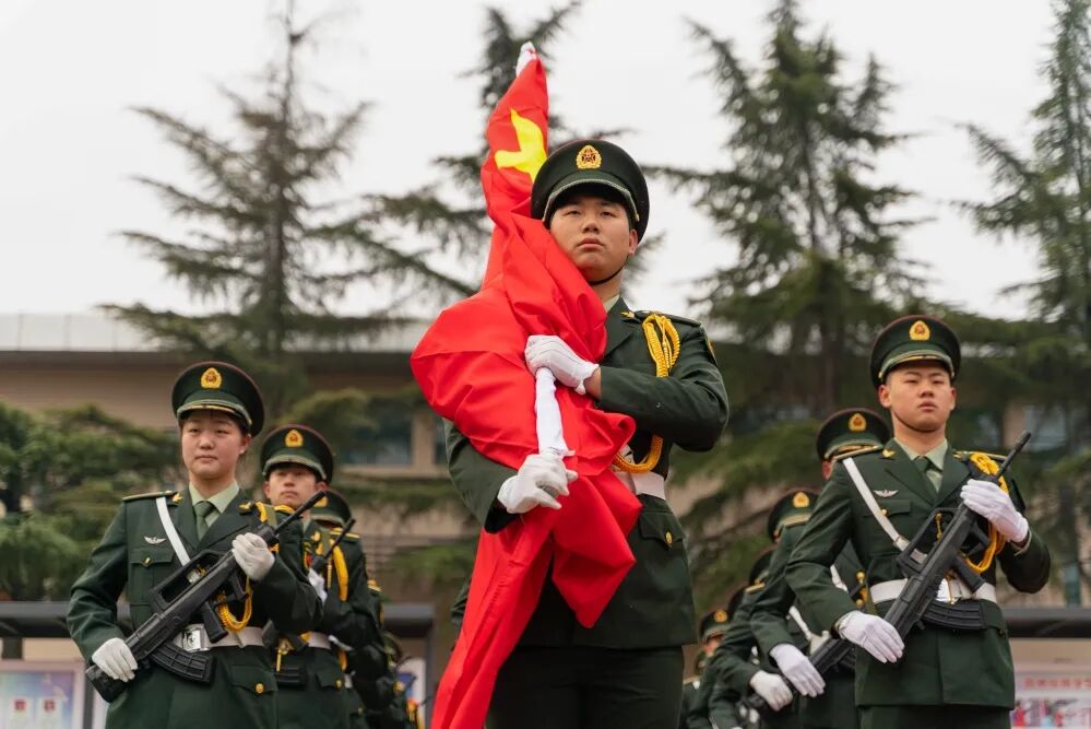 伴着雄壮的国歌声,五星红旗冉冉升起,全院师生齐唱国歌,庄严而隆重。