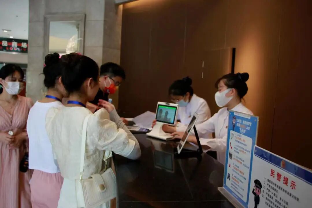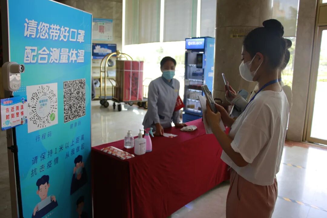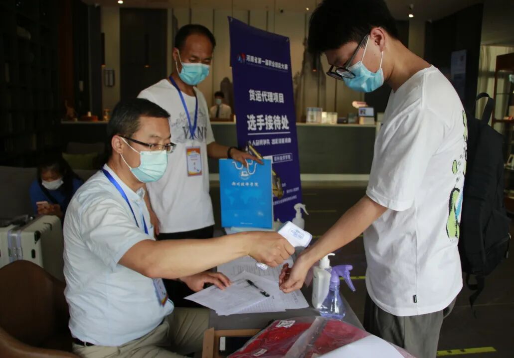 报到现场,学院接待人员在酒店门口设置了接待处,配备了防疫物资,各酒店在属地疫情防控部门的指导下,对来自全省各地的参赛选手进行严格防疫检查,登记信息、查验证明、发放秩序册、分配房间等。