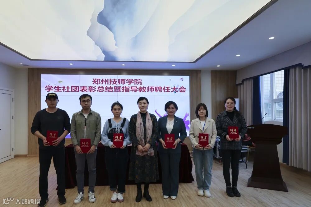 陈振华、王淼、李建民、燕伟等学院领导分别为获奖的优秀指导教师、优秀社团和优秀学生代表颁发奖状和荣誉证书。团委书记宋高博宣读《关于学生社团指导教师的聘任决定》,陈振华同志向新聘老师颁发聘书。