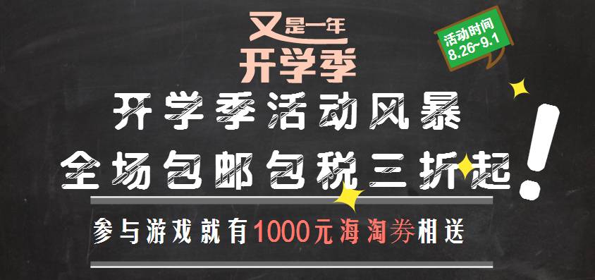 开学季玩游戏,千元礼券享不停!8月26日-9月2日活动期间,只要参与奔跑吧宝贝游戏游戏积分达到1000以上 即可有机会获得1000元海淘购物劵。
