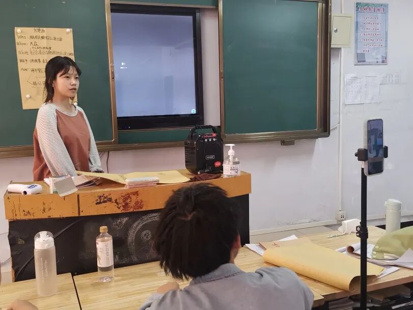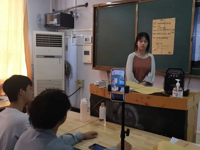 经济贸易系华书刚老师在上《沟通课》的时候,一边使用钉钉开启网课,一边使用微信视频通话,让学生在教室展示分组讨论成果。学生展示、老师讲评,师生互动做的就像在教室一样。华老师巧妙地组合使用了钉钉、微信,让大家融入到了一个课堂中来。