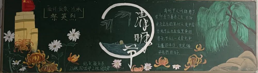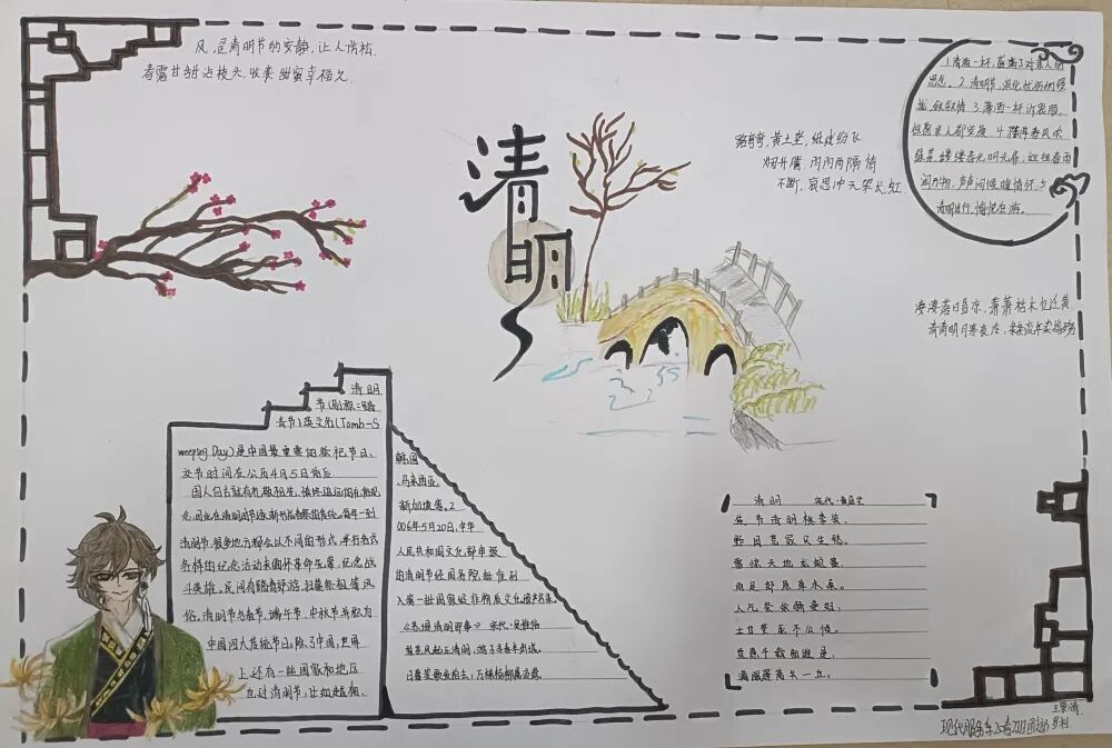 在清明节到来之际,为缅怀革命先烈,继承光荣传统,培塑爱国情怀,近日学院现代服务系组织开展了“我们的节日-清明节”主题板报手抄报创作评比活动。