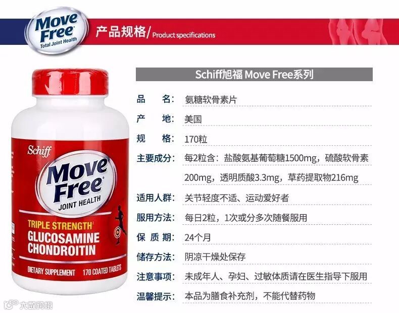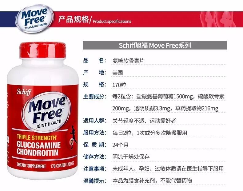 保健品在美国的认知度很广,但在国内的名声并不好,当然有些补充剂确实比较有用,因此让大众熟知,比如玛卡,但整体效果还是欠佳。本次推荐的Schiff Move Free红瓶在国外知名度较高,产品的纯净性和稳定性是业界的标竿。以Move Free关节保健系列最为出名,主要作为术后恢复品和老人保健品比较适宜,这里不做过多的介绍,喜欢的朋友可以到笨土豆官网进行查询和购买。