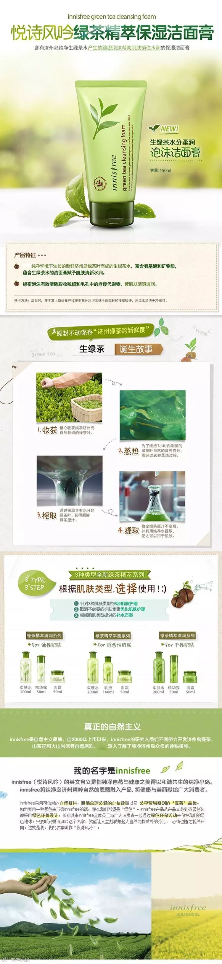 到了这个季节,对于护肤用品其实也就一个诉求了:保湿!夏转秋的过程中,如果急需种草一套保湿护肤的亲们,innisfree是个不错的选择,韩国的超人气明星产品质量没的说,并且知道这个牌子也就一定知道精粹平衡保湿柔肤水&柔肤露这套组合了,用济州岛的栽培绿茶作原料,保湿锁水同时不油腻又吸收快!想解决皮肤干燥,T字区油腻的亲们赶紧下手~