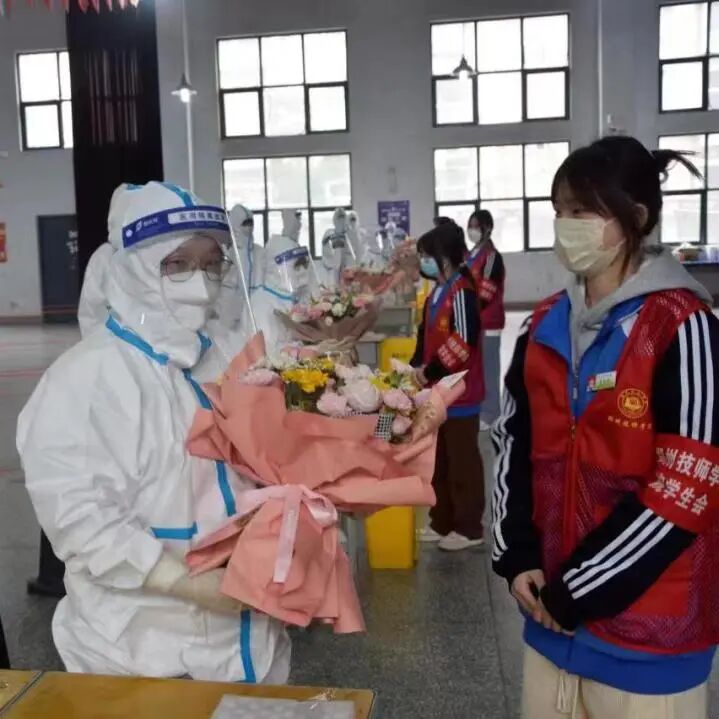 根据疫情防控工作安排,今天6名医护人员来到学院陇海路校区为全体师生进行核酸检测。学院为了表达对医护人员的感谢和敬意,在这个特殊的日子里为她们献上美丽的鲜花。