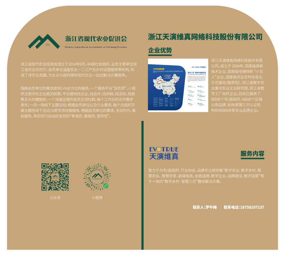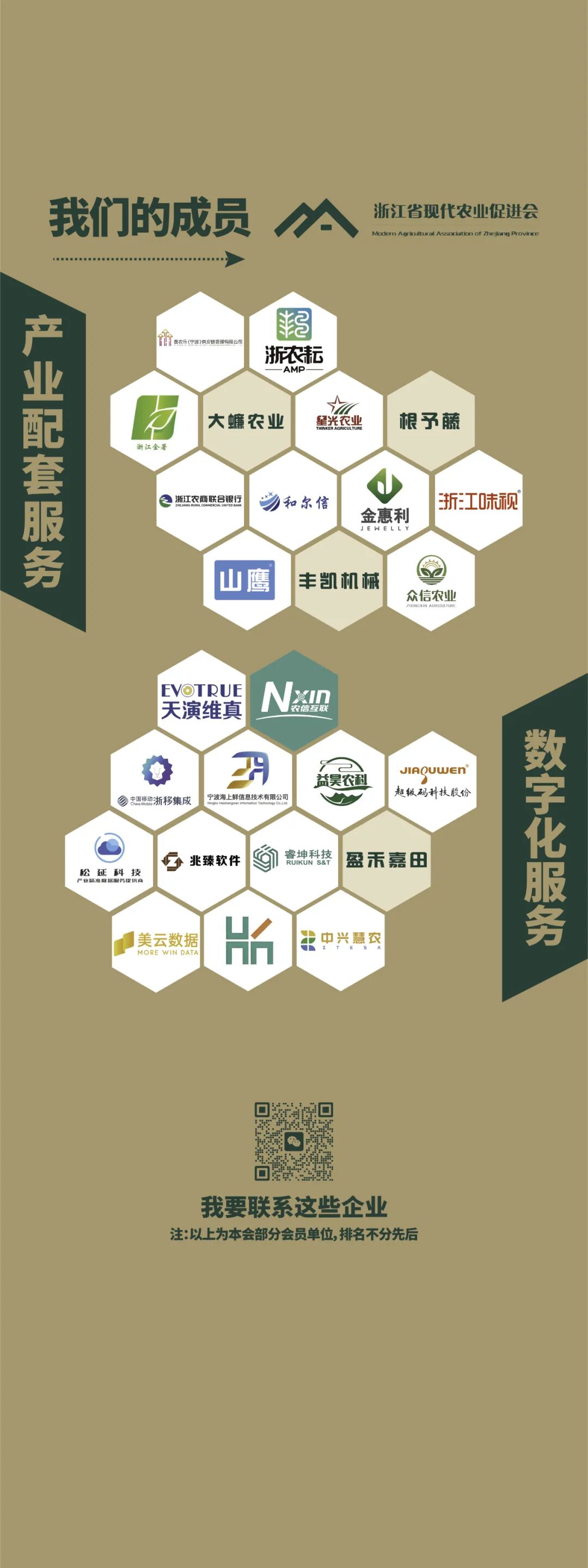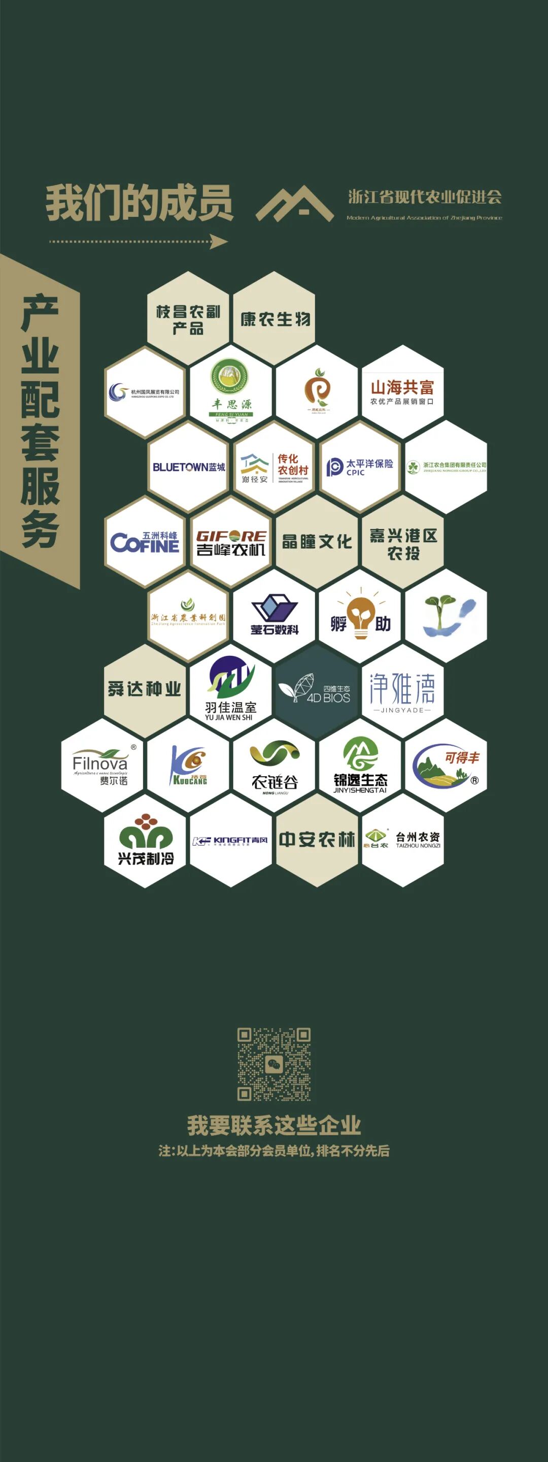 浙江省现代农业促进会将于3楼D馆产业服务展区D03展位集中展示会员单位,围绕农业全产业链,针对各类农业应用场景提供一站式解决方案服务。22日下午,本会的第四届会员代表大会将在浙江农业博览会现场召开,期待您前来洽谈。