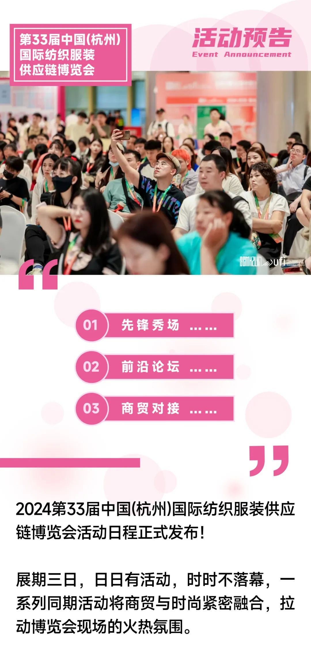 2024第三十三届中国(杭州)国际纺织服装供应链博览会将于12月5日-7日在杭州国际博览中心举办。