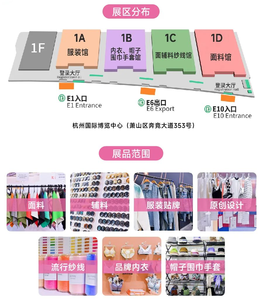 第33届中国(杭州)国际纺织服装供应链博览会展览面积将突破50,000平方米,汇聚1500+家展商。四大展馆,含面料、辅料、服装贴牌、原创设计、流行纱线、品牌内衣、帽子围巾手套七大品类展品,展示纺织服装品类全景,聚焦市场热点。