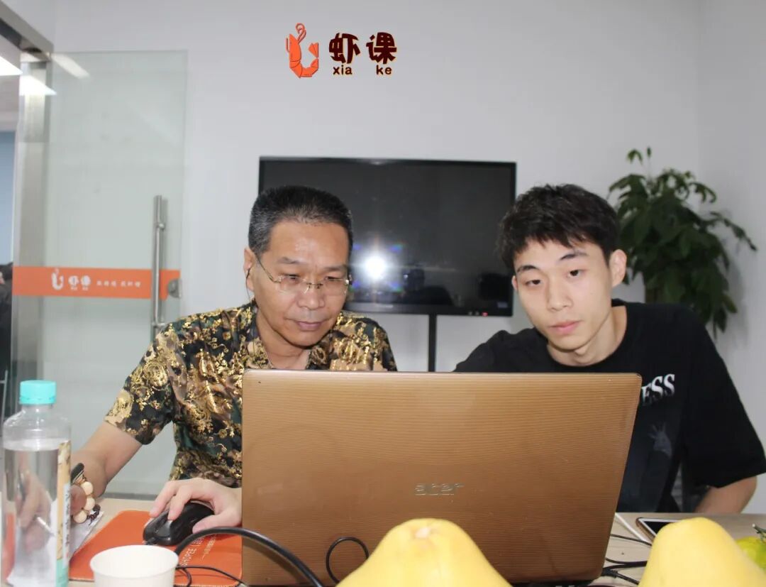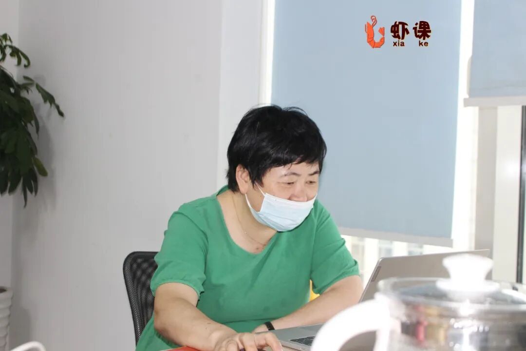 杜女士7月份报名,线上学习了一阵,又来虾课总部参观学习。