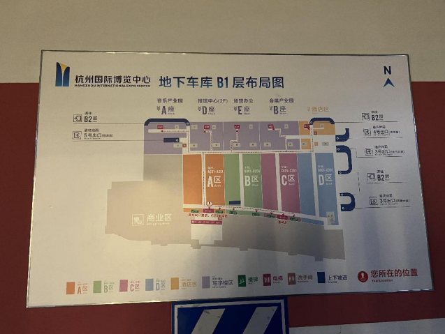 地下停车场:从奔竞大道博览中心 3 号门进入地下停车场,行驶至 A 区,由图所示 A 区正下方观光电梯楼上至展馆 1 层由 E4 进入展馆。