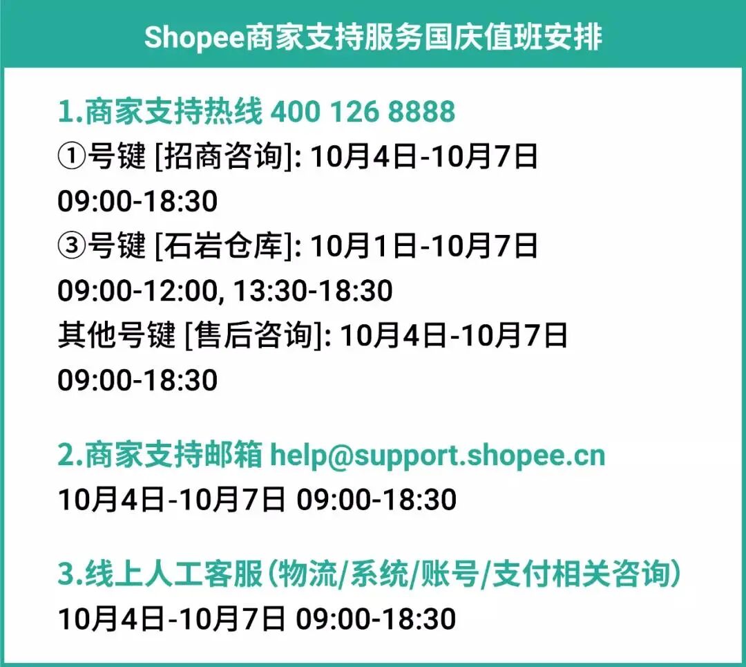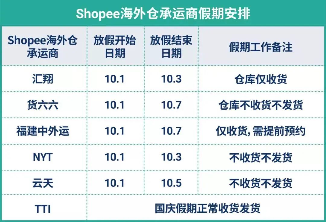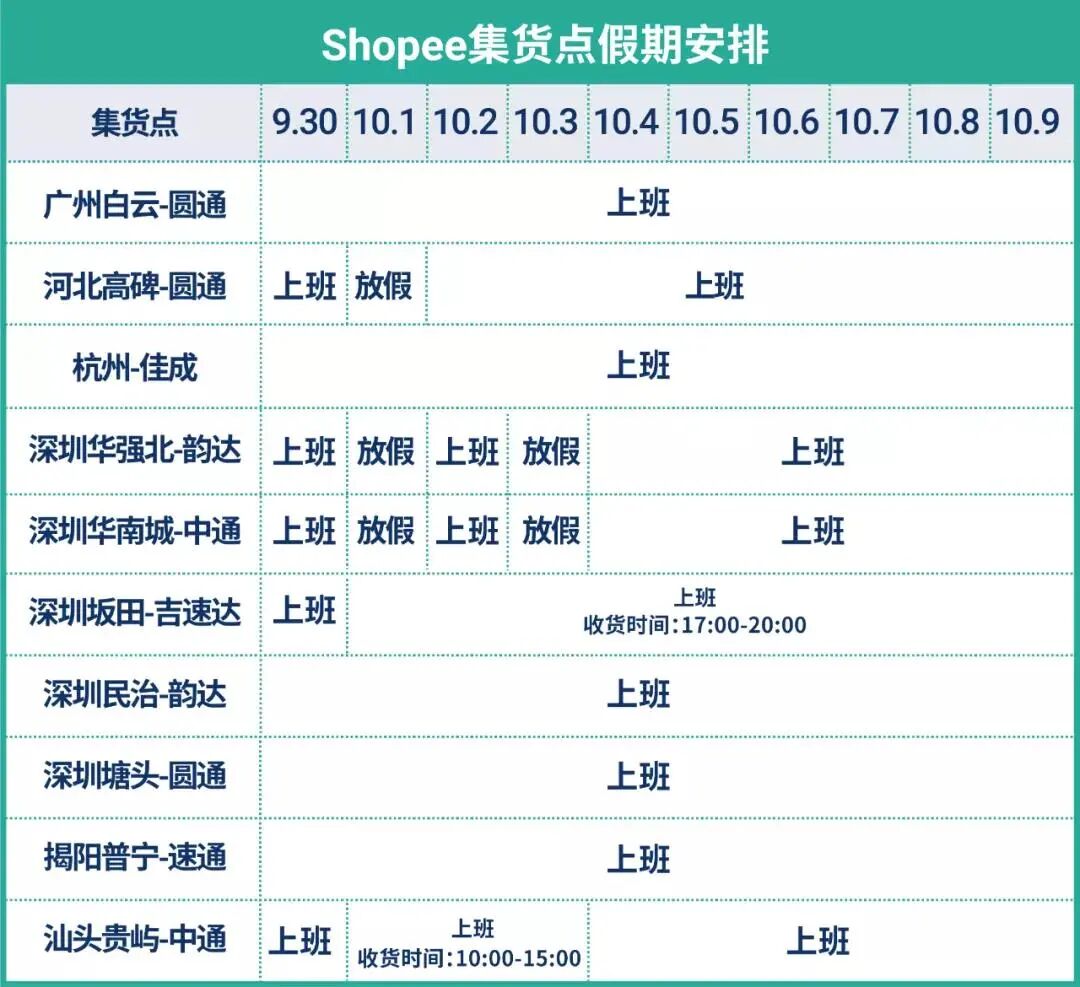 Shopee平台将在国庆节法定假日内豁免卖家的物流时效,即10月1日至7日物流时效豁免。