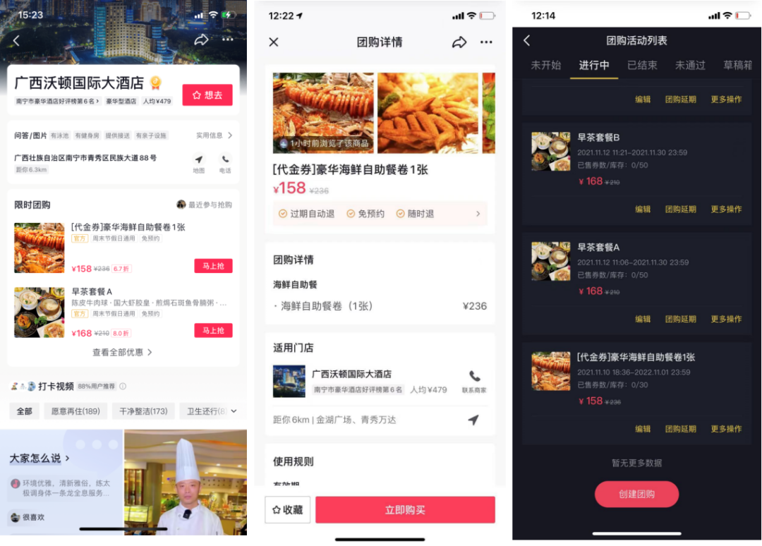 前期的新媒体宣传取得了不错的效果,项目前景也逐渐明朗,这对品牌和我们都是莫大的鼓励。因此乘胜追击,酒店方在活动节点内容创作、IP打造、小红书种草、产品宣传(早茶、自助餐、月饼、外卖餐车)等方面提出营销思路,我们也配合开通抖音团购、视开通频号小店,再度深化普凯酒店的营销维度,将多平台流量池导入客户池。