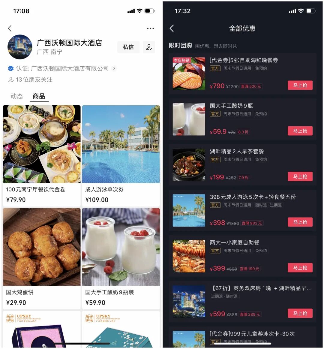 我们为普凯酒店开通团购功能、微信小店,做好各类券目、产品的上架和运营。借助短视频的推送来完成销售转化。在短短几个月内,就有许多消费者前来咨询购买,成交数量逐日而增。