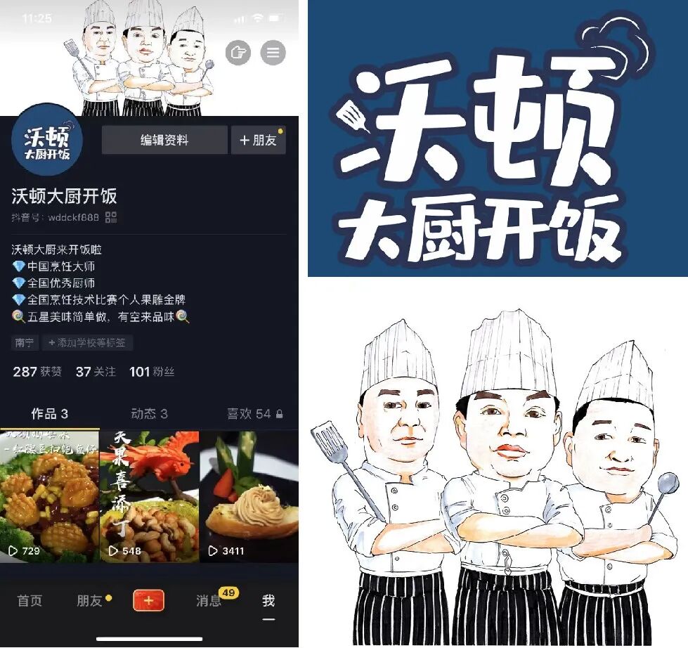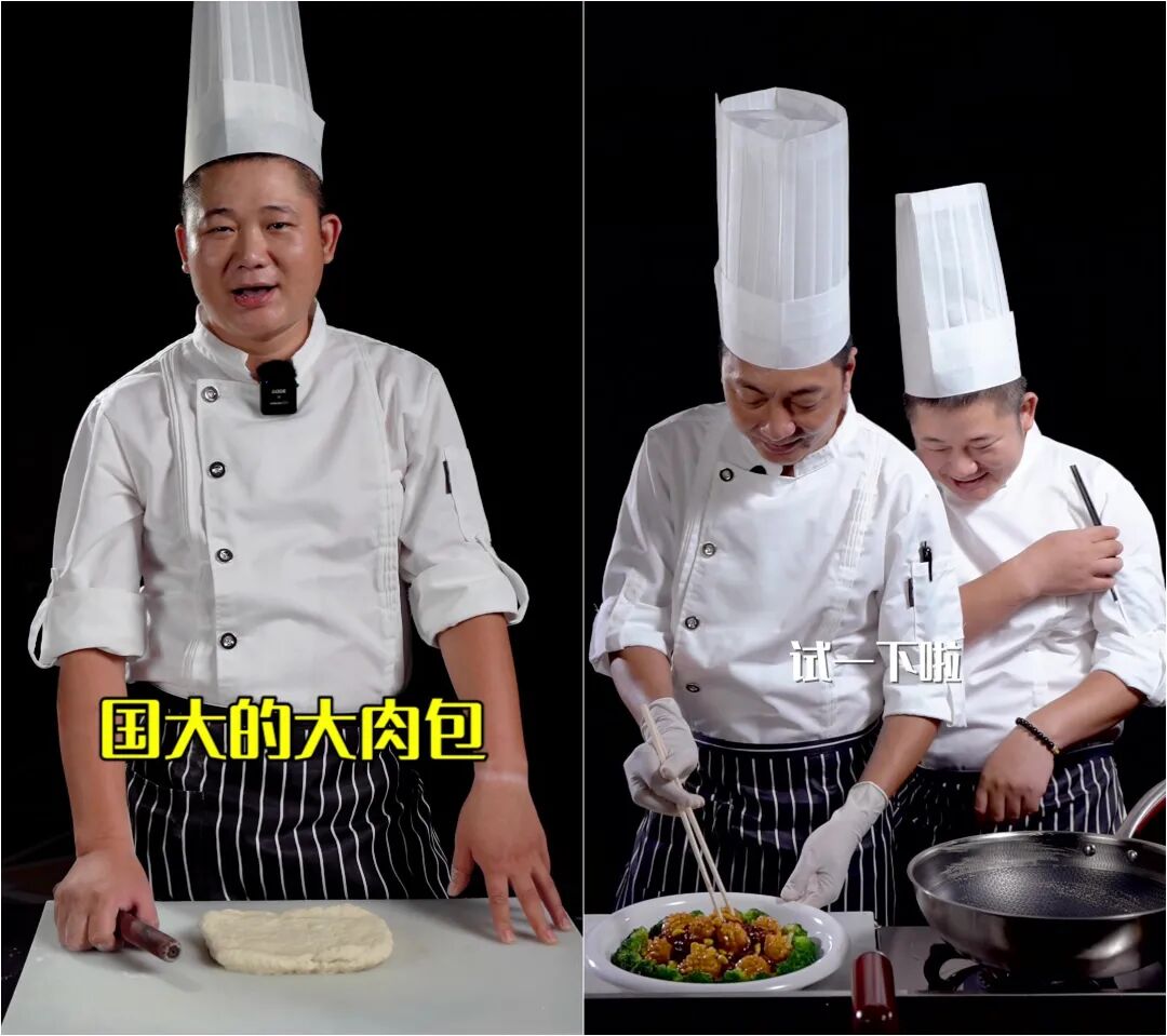 由此,酒店让三位大厨从幕后走到台前,成为“大厨开饭”这一账号的主角。三人性格、专业领域不同,但人物形象不够明显也未够突出,为了将三人特色最大化,我公司放大每个大厨的人物性格特点,将三人打造成霸道主厨,夹壮面点师和幽默风趣南宁主厨的形象,在视频中不断强化人物特色,以此打造强IP符号,打造网红厨师,让他们成为后期直播带货的主力主播。
