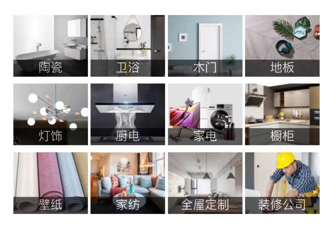 油漆涂料、各类管材、智能锁具、吊顶灯饰、开关电器等;