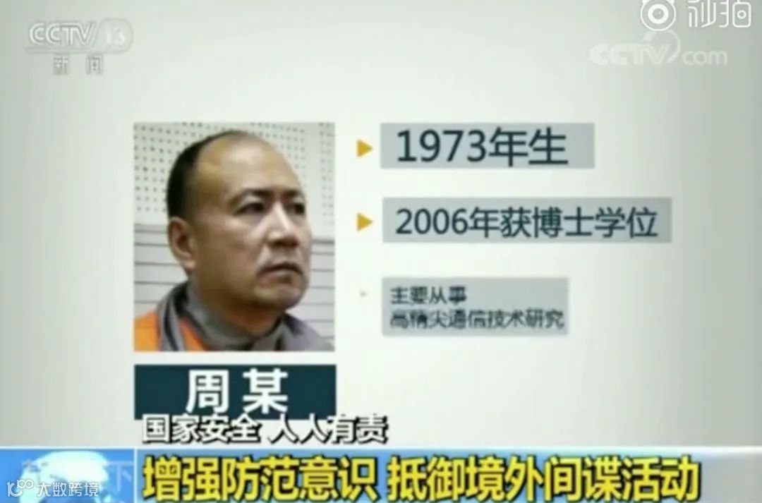 2014年,周某因间谍罪被判处无期徒刑。
