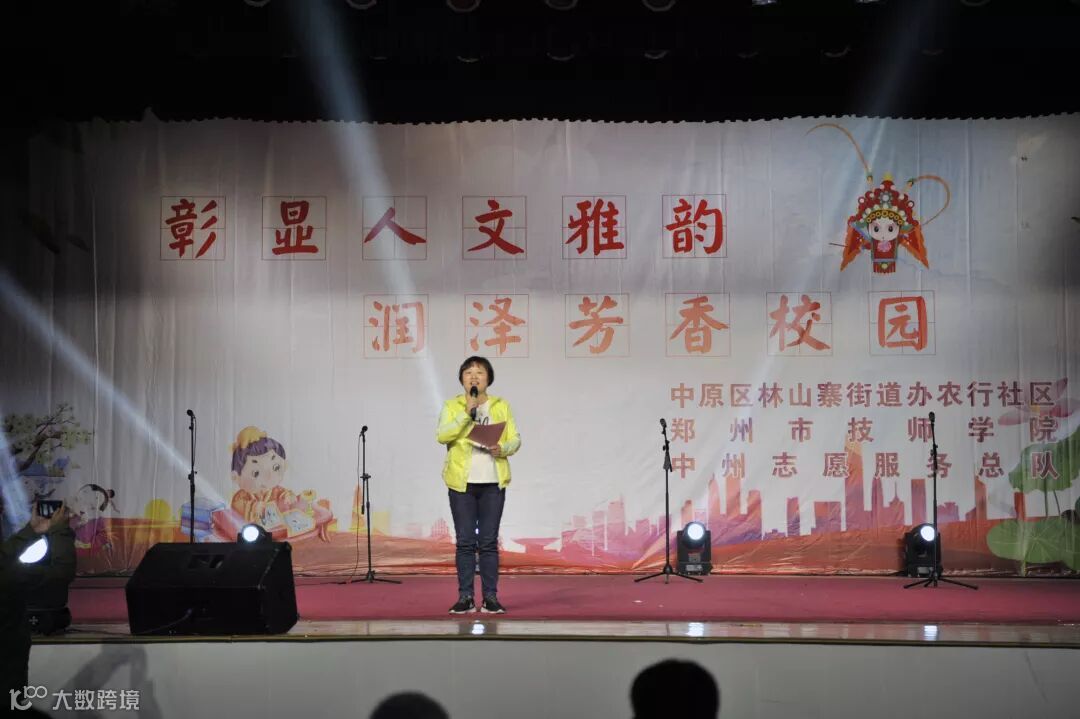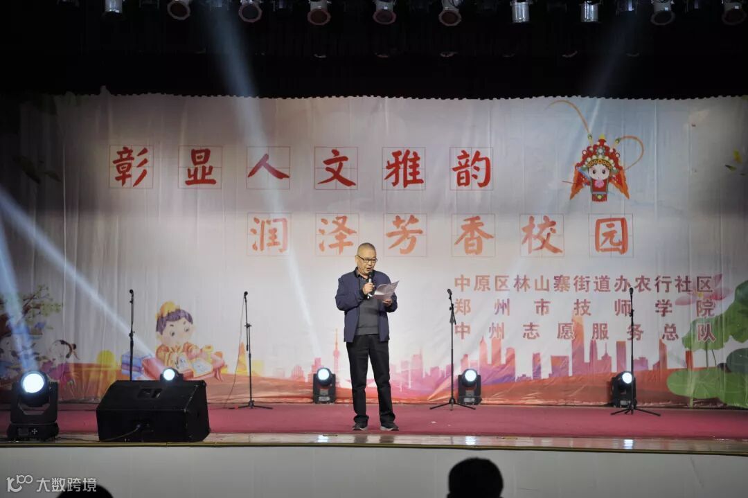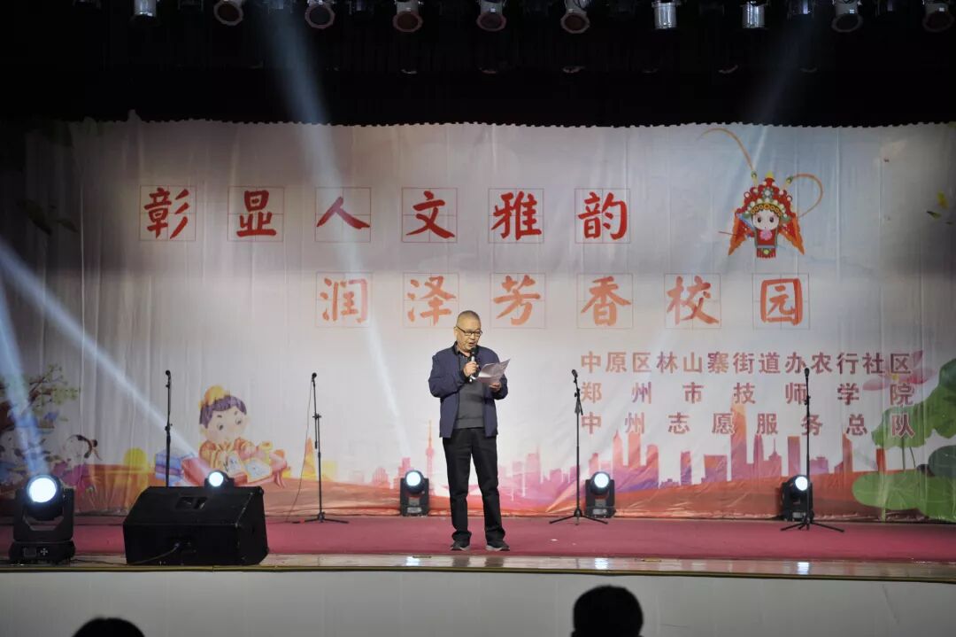 演出当天,林山寨办事处宣传委员毛淑君和技师学院副院长李伟纲代表活动主办方发表了热情洋溢的致辞,林山寨办事处文化办主任刘新宇、农业银行社区主任白俊杰和郑州市技师学院全体师生2千余人参加了此次活动。