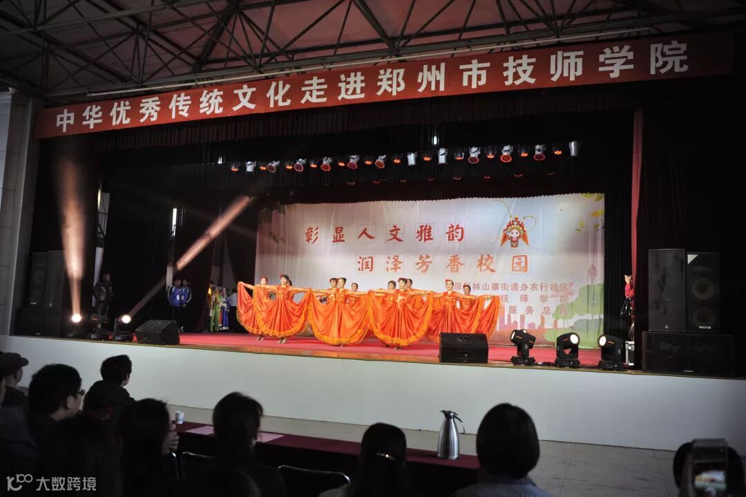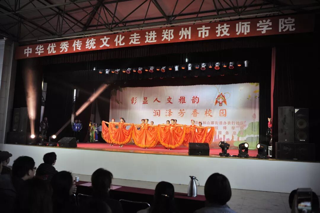 为进一步弘扬中华优秀传统文化,培养学生综合文化素养,推进学院和共建社区精神文明创建工作,3月28日,郑州市技师学院和中原区林山寨街道办事处农业银行社区联合举办“中华传统文化进校园”大型文艺展演活动,中州艺术团志愿者服务总队走进郑州市技师学院,为广大师生带来一场精彩的文艺汇演。