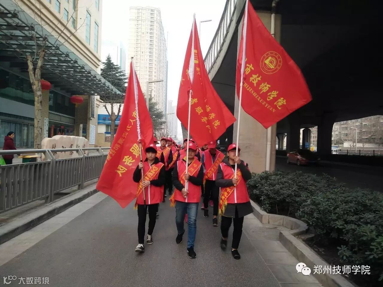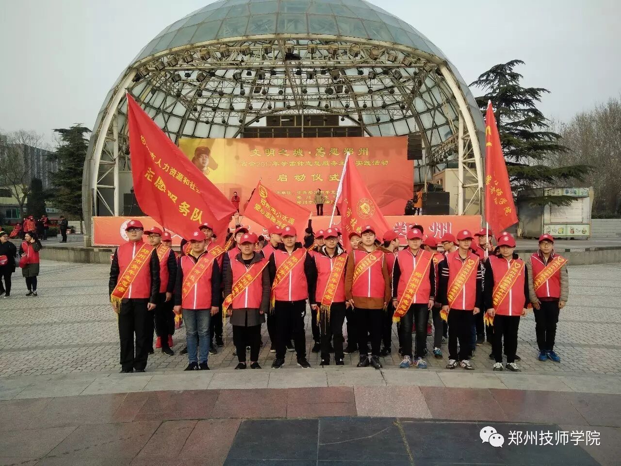 3月4日上午,春光明媚,郑州市技师学院30名学雷锋志愿者从学院出发,迈着整齐的步伐前往绿城广场参加“省会2017年学雷锋志愿者服务主题实践活动”启动仪式。