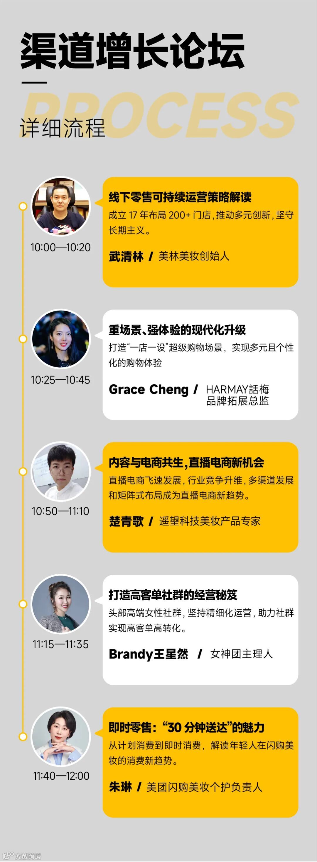 简介:创新与融合成为渠道增长趋势。本论坛特邀五大渠道代表,从线下零售、直播、特卖、私域团购、即时零售等场景拆解零售玩法,起底流量与盈利的秘密。