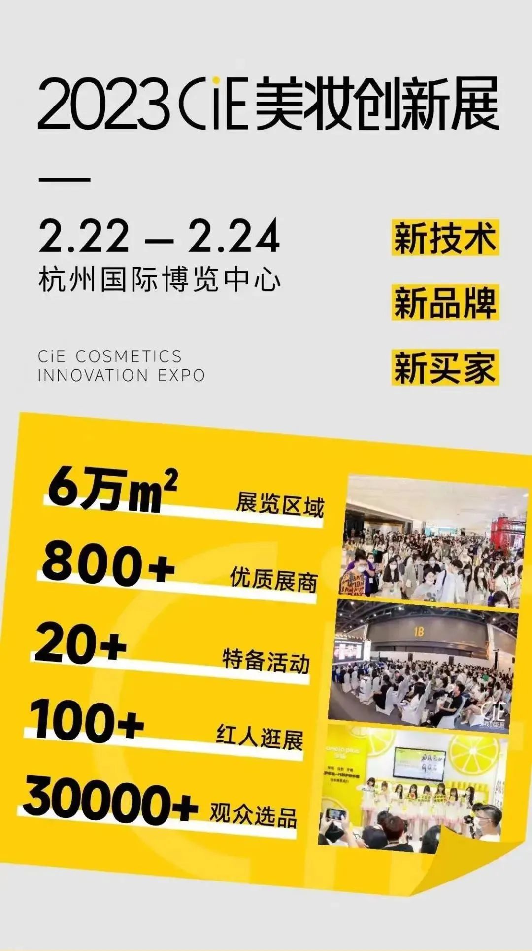 作为2023年首场大型美妆展会——2023CiE美妆创新展,即将于2月22日-24日,在杭州国际博览中心举办。