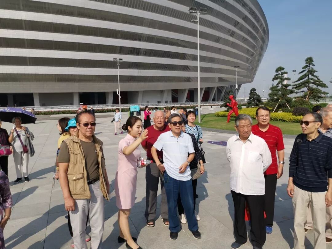 首先,工会人员带领老同志参观位于陇海西路与西四环交叉口东北角的奥体中心,一下车,老师们就感受到了奥体中心的大气、宏伟和壮观。奥体中心占地约485亩,由“一场两馆”组成,其中包括6万座体育场、1.6万座体育馆、3000座游泳馆。