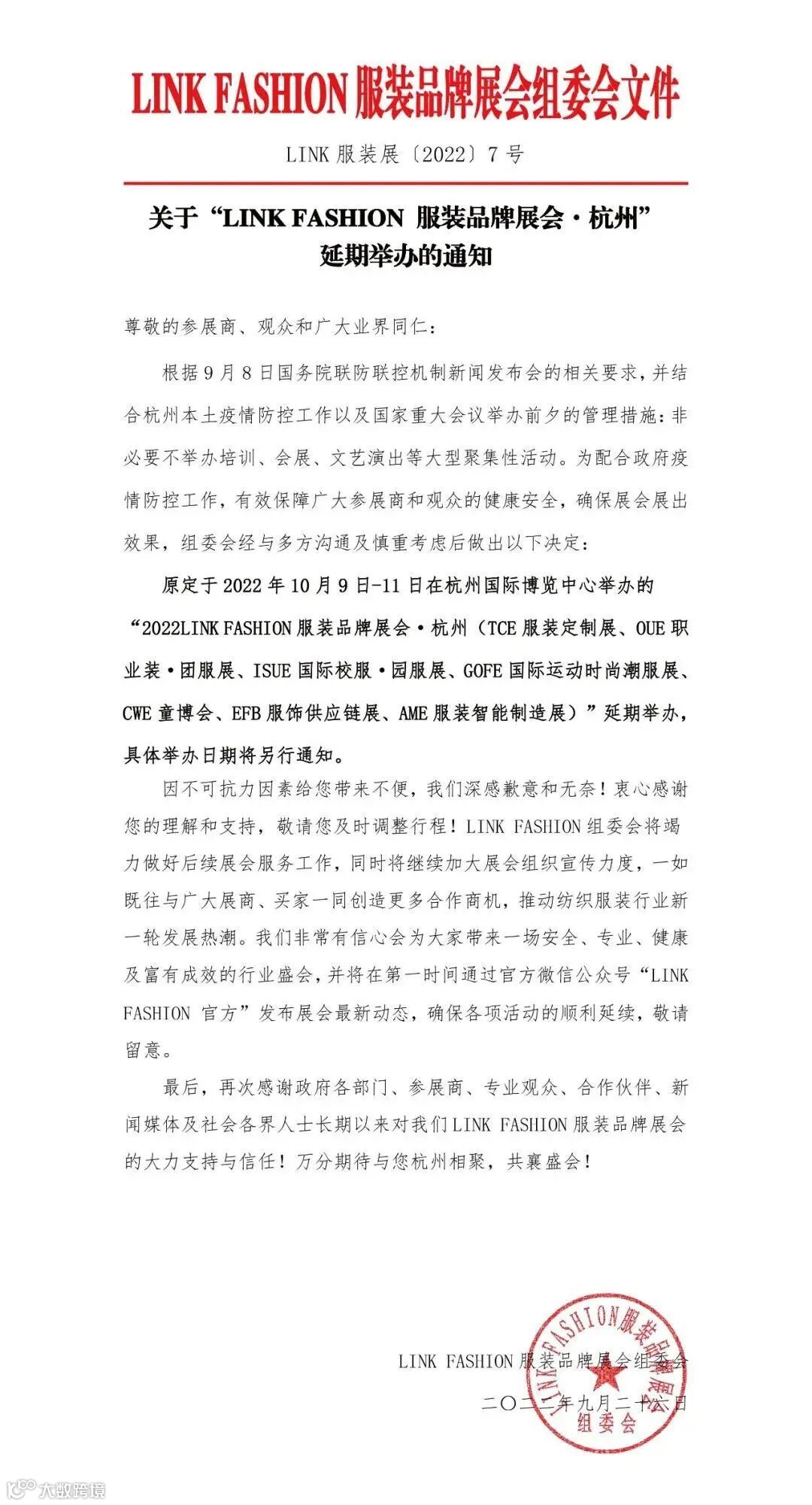 因不可抗力因素给您带来不便,我们深感歉意和无奈!衷心感谢您的理解和支持,敬请您及时调整行程!LINK FASHION 组委会将竭力做好后续展会服务工作,同时将继续加大展会组织宣传力度,一如既往与广大展商、买家一同创造更多合作商机,推动纺织服装行业新一轮发展热潮。我们非常有信心会为大家带来一场安全、专业、健康及富有成效的行业盛会。