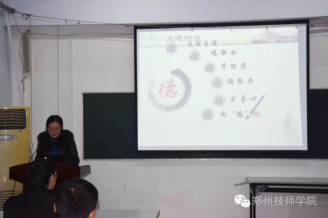 11月15日下午,一场以“提升道德修养”为主题的道德讲堂活动在郑州市技师学院道德讲堂教室举行。活动由学院数控系党支部组织,数控系领导、全体班主任、数控系全体学生参加了此次活动。