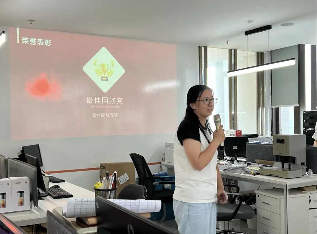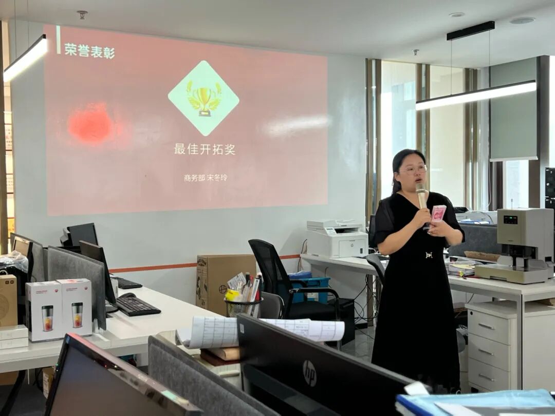 会上对公司七月份最佳开拓奖、优秀新人奖、优秀团队奖等专项工作进行了团队及个人荣誉表彰和奖励。