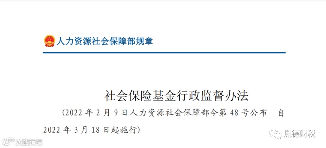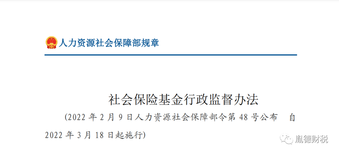 为加强社会保险基金行政监督,保障社会保险基金安全,人力资源社会保障部于近日制定发布《社会保险基金行政监督办法》,自2022年3月18日起施行。
