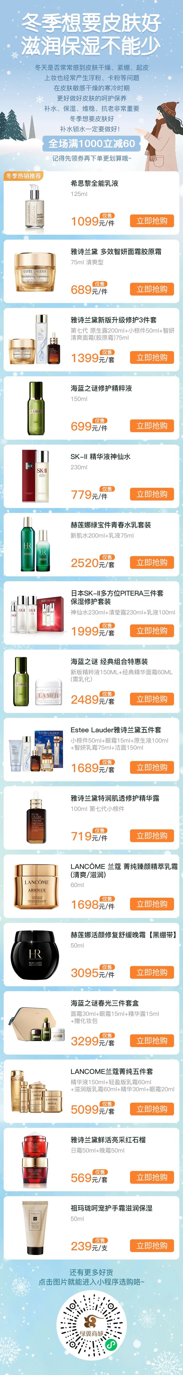 降温也降价,冬季想要皮肤好,滋润保湿要做好!