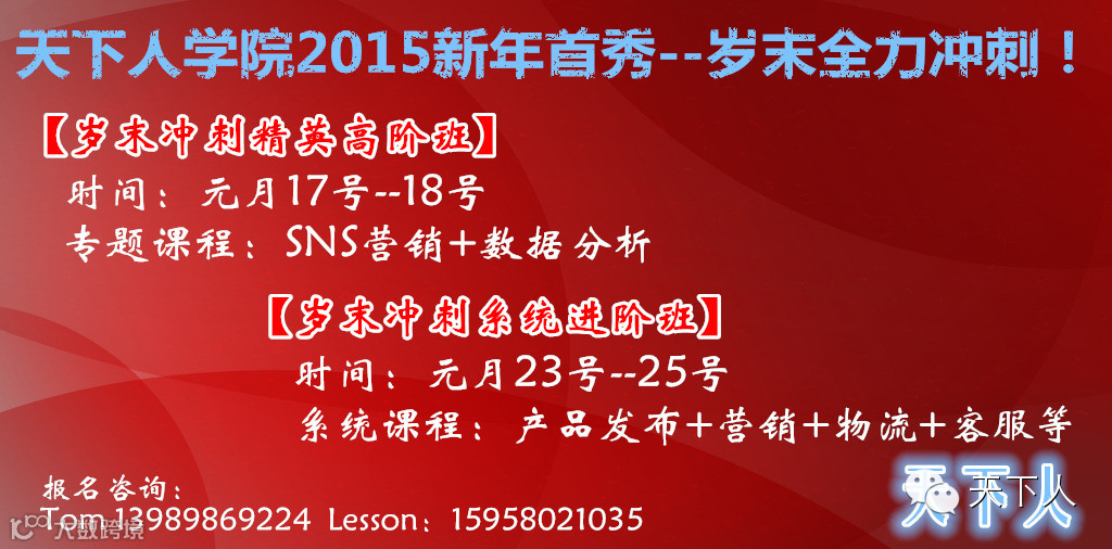 天下人小编:徐曾同学这段时间正在进行速卖通大学讲师资格审核,很可能很快就会先在线上跟大家分享更多的内容,加油,徐曾同学!(后续会有更多的学员成长故事、干货与大家一起分享)