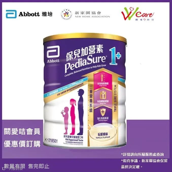 Abbott Pediasure雅培保兒加營素1+ (雲呢拿味)兒童成長奶粉 850克