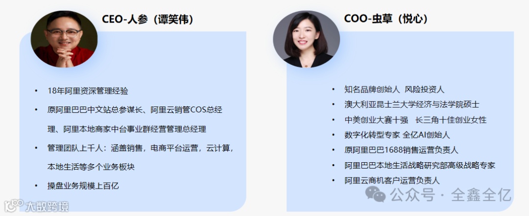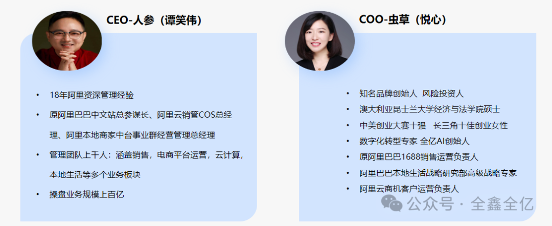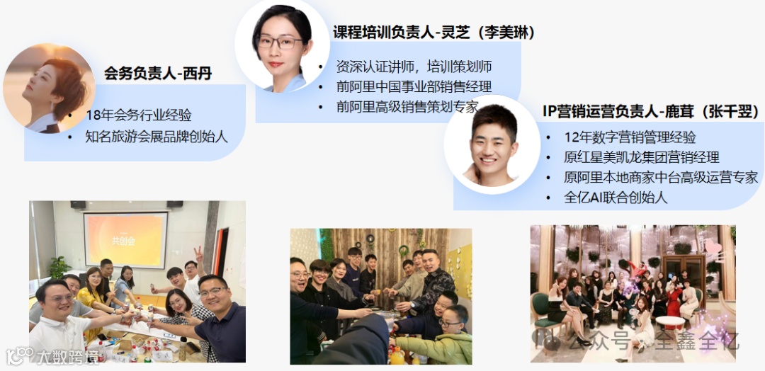全鑫全亿团队主要来自阿里巴巴,IBM,华为等BAT公司15年以上资深专家组成。常年服务于阿里巴巴,华为以及各大国央企平台,为企业提供端到端一站式的企业游学,会务策划,企业管理培训,企业咨询陪跑等服务。