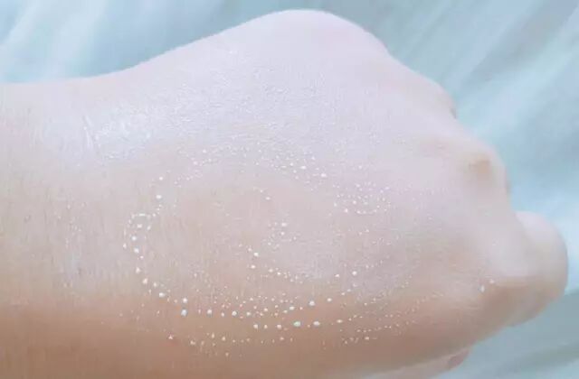其实采用了冷凝粒子技术,当固体羊奶精华遇到>25℃的温度时(人体体温36℃左右),会自动溶解为液体,也就是咱们肉眼可见的白色奶珠啦~