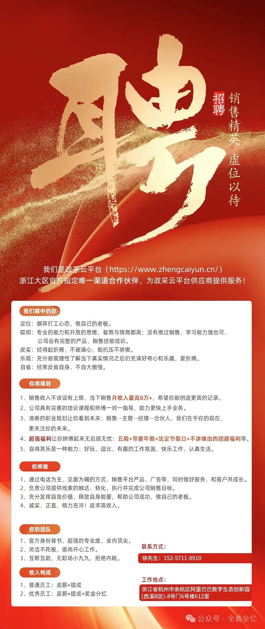 亲爱的朋友们,你是否渴望在充满挑战与机遇的舞台上展现自己的才华?是否期待在一家充满活力、注重团队协作的公司中实现自我价值?现在,机会来啦!我们帮会员公司发布火热招募销售精英,只要你有梦想、有热情,就请加入我们,一起创造辉煌!